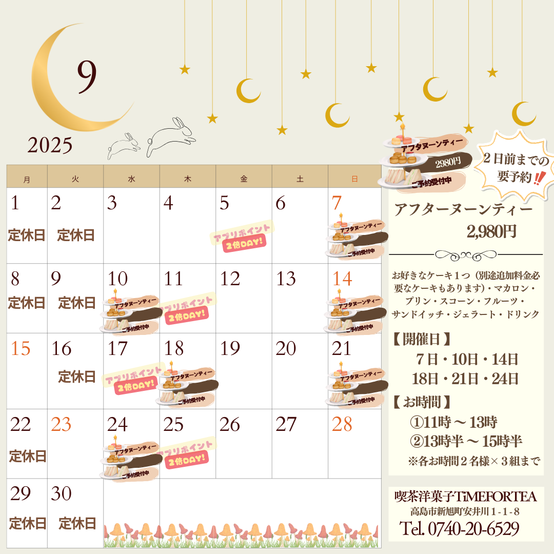 アフターヌーンティーは2日前までの要予約です